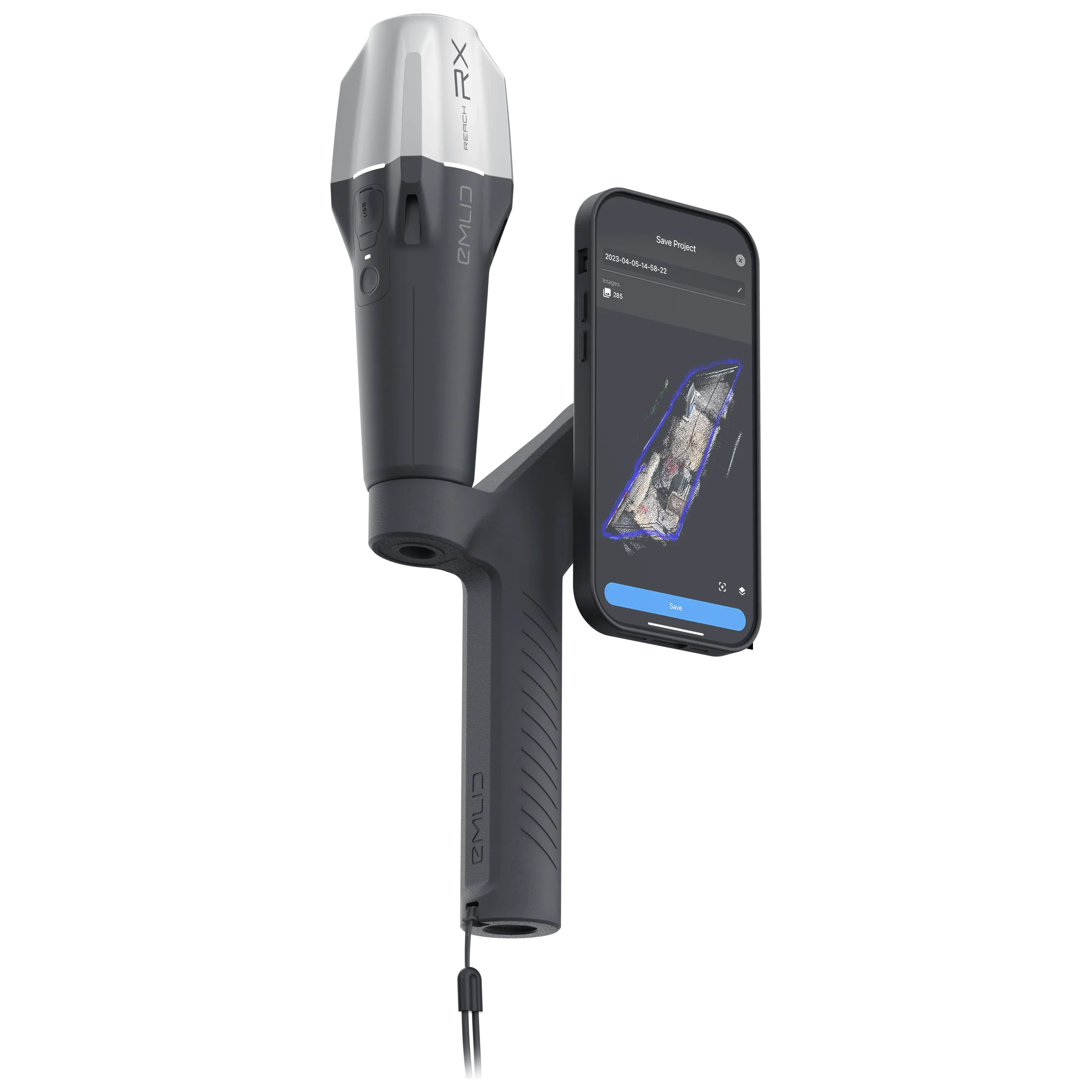 Poignée de numérisation nécessaire pour travailler confortablement avec la solution intégrée Reach RX2 et PIX4Dcatch.